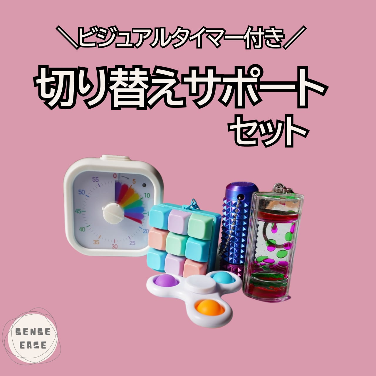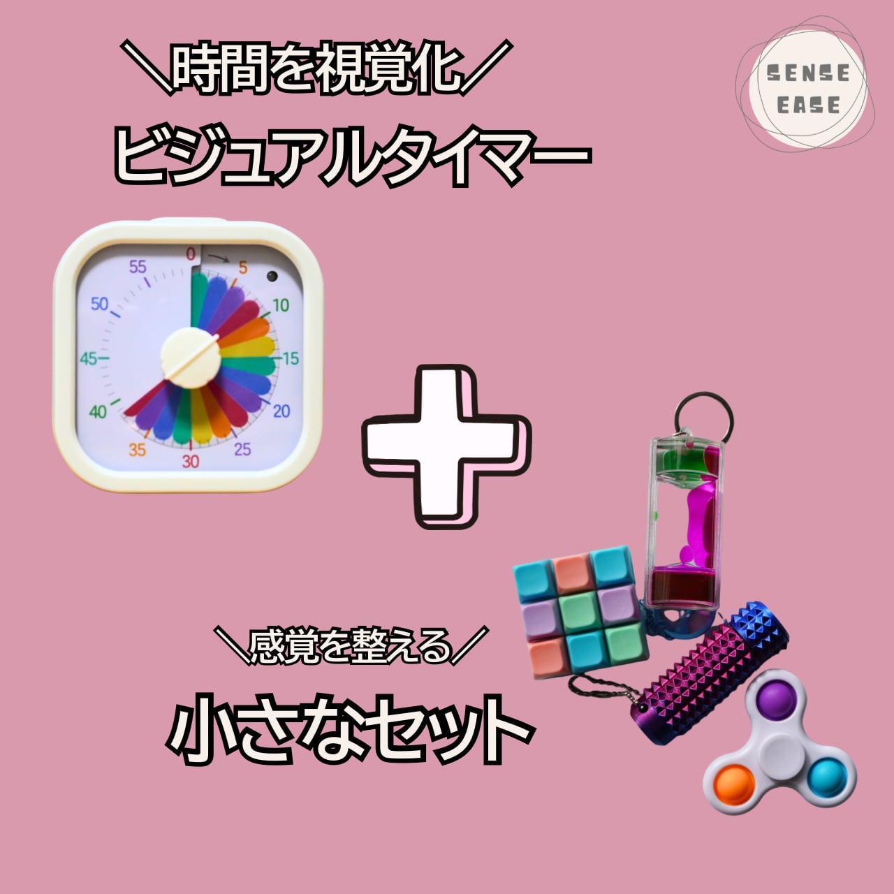 ビジュアルタイマーと感覚を整える小さなツールのお得なセットです。