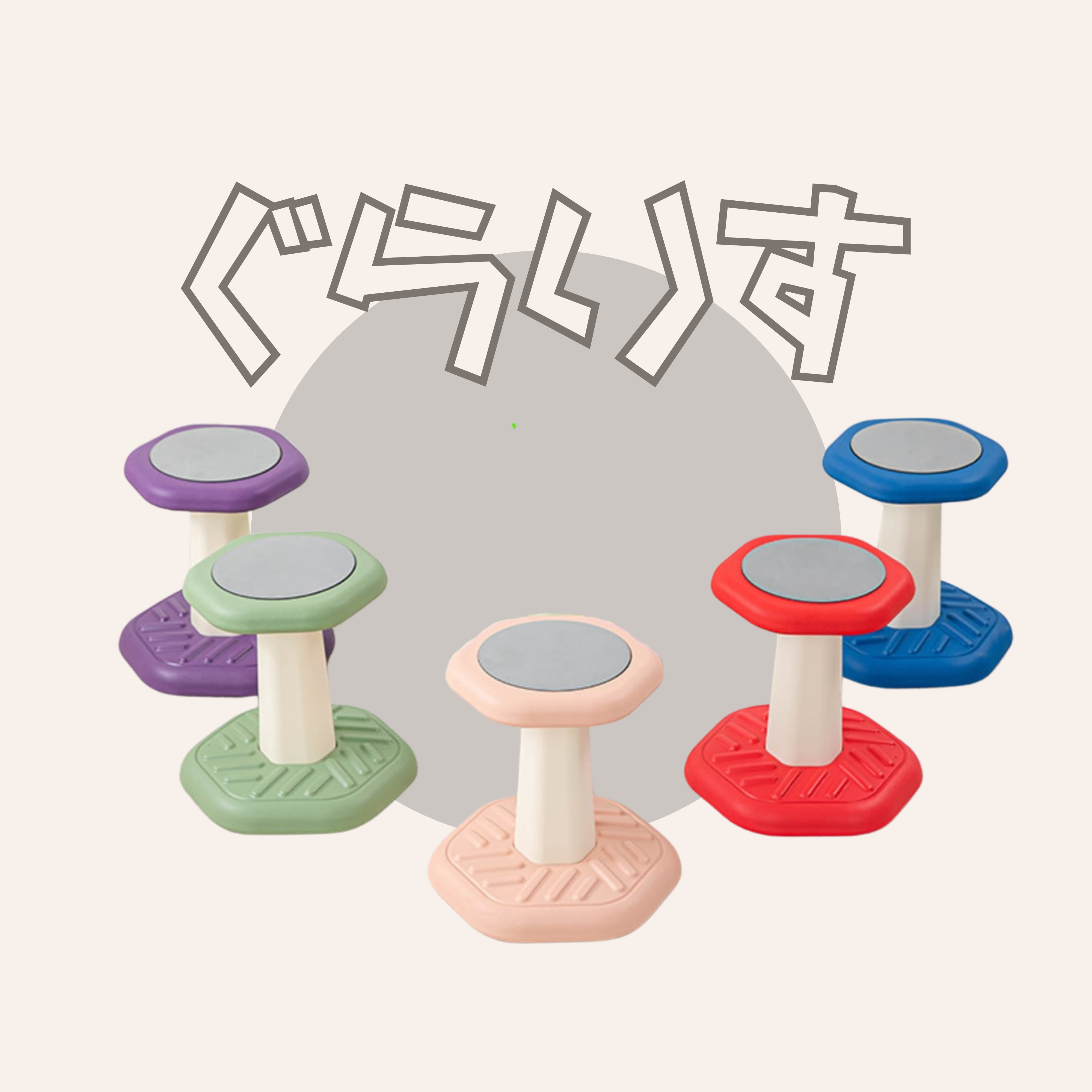 このバランスチェア(Wobble Stool)は、子どものバランス感覚や体幹を楽しく鍛えることができる椅子です。座りながら体を自然に動かし、感覚を刺激することができるので、感覚刺激があることで気持ちが安定するお子様や、より集中力を発揮できるお子様におすすめです。